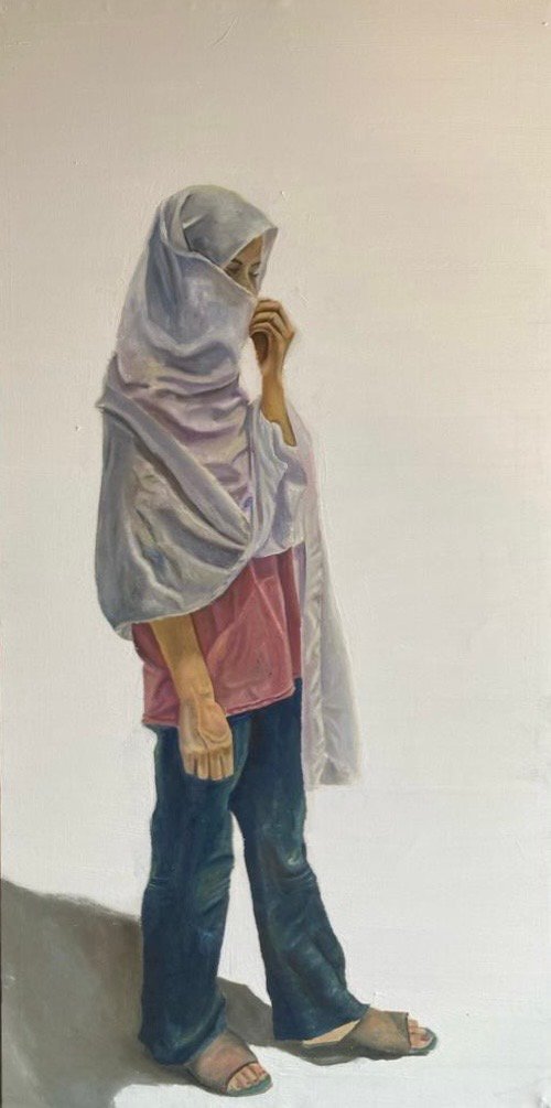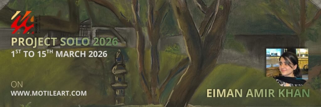 Eiman Aamir Khan holds a Bachelor’s degree in Fine Arts from FJWU Rawalpindi. Her practice is deeply personal, exploring emotion, identity, spirituality, and cultural memory through mixed media, oil paintings, pastels, printmaking, and still life. Before beginning each work, she develops concepts through journaling and sketches, allowing ideas to evolve thoughtfully. Her six-piece oil series, “In Search of My Heaven,” reflects on freedom as both a personal aspiration and a societal ideal, particularly within Pashtun cultural contexts. Through color, light, and symbolism, she envisions spaces where serenity meets reality and limitations soften. Alongside conceptual works, her intuitive explorations of texture and form express mood, observation, and experimentation. Eiman has exhibited at Lok Virsa (2024), Alhamra Young Artists Exhibition (2025), and VSCOPK, where she received a Gold Medal. She also won First Place in the 2025 National Painting Competition by Youth for Pakistan and was featured in Contemporary Identities (Issue #27, 2025).
