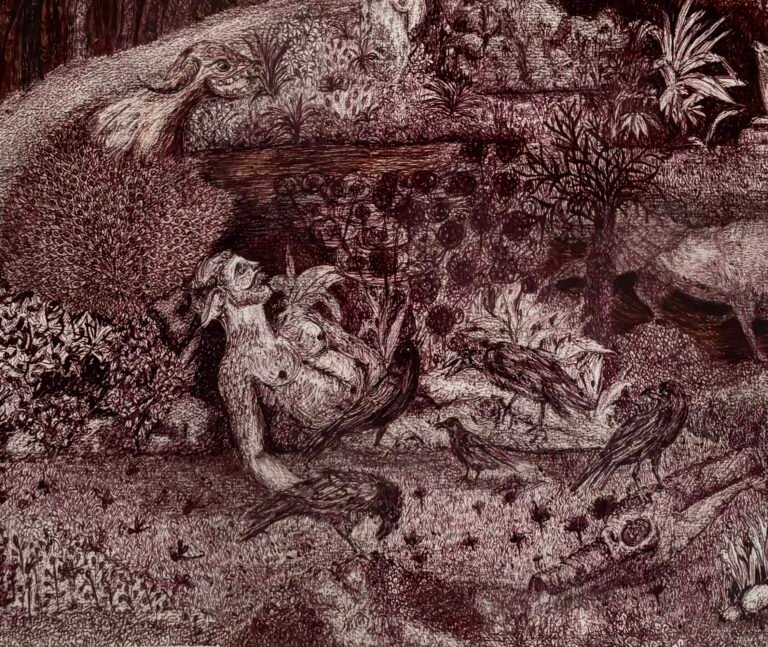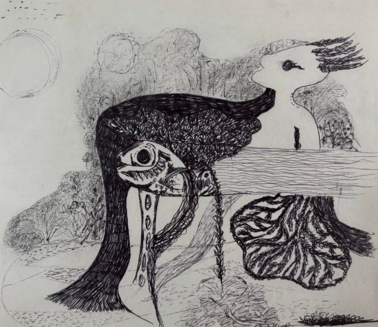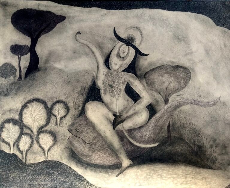 While relentless development continues to define the modern era, an attempt is made through their art to preserve the quiet, forgotten corners of nature. What emerges on paper is shaped not only by the artist’s personal subconscious but also by an ecological consciousness—a visual reminder of what is being lost and what the artist remains rooted to.