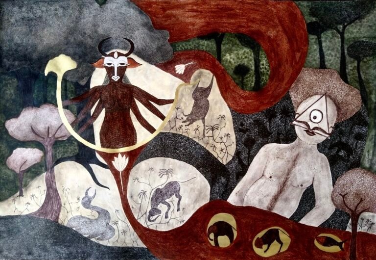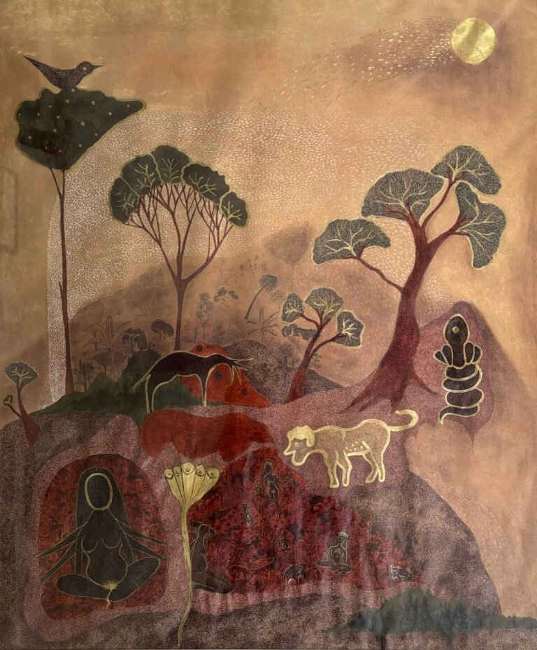 In recent years, their work has been increasingly shaped by a growing sense of environmental anxiety. Through the use of abstract forms and symbolic landscapes, responses are made to the irreversible loss of natural habitats, particularly as a result of rapid urbanization and deforestation in regions such as India. Motifs such as trees, organic patterns, and decaying structures are frequently incorporated, reflecting the fading connection between humanity and the natural world.