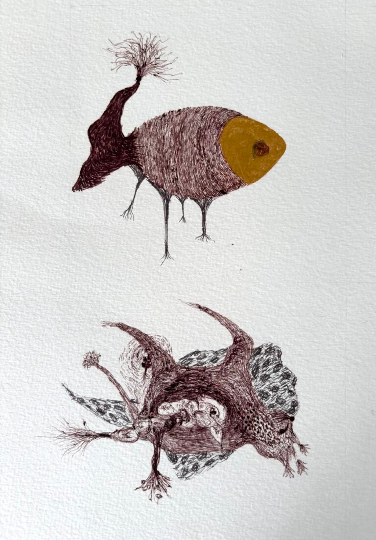 The artistic practice of this creator is guided by intuitive and subconscious impulses, which are revealed gradually through the act of drawing. Memories and internal reflections are often echoed in the work. Pen and ink are employed as primary tools, chosen for their immediacy and fluidity. The creative process is experienced as a quiet escape into solitude—like an ongoing maze without a defined destination.