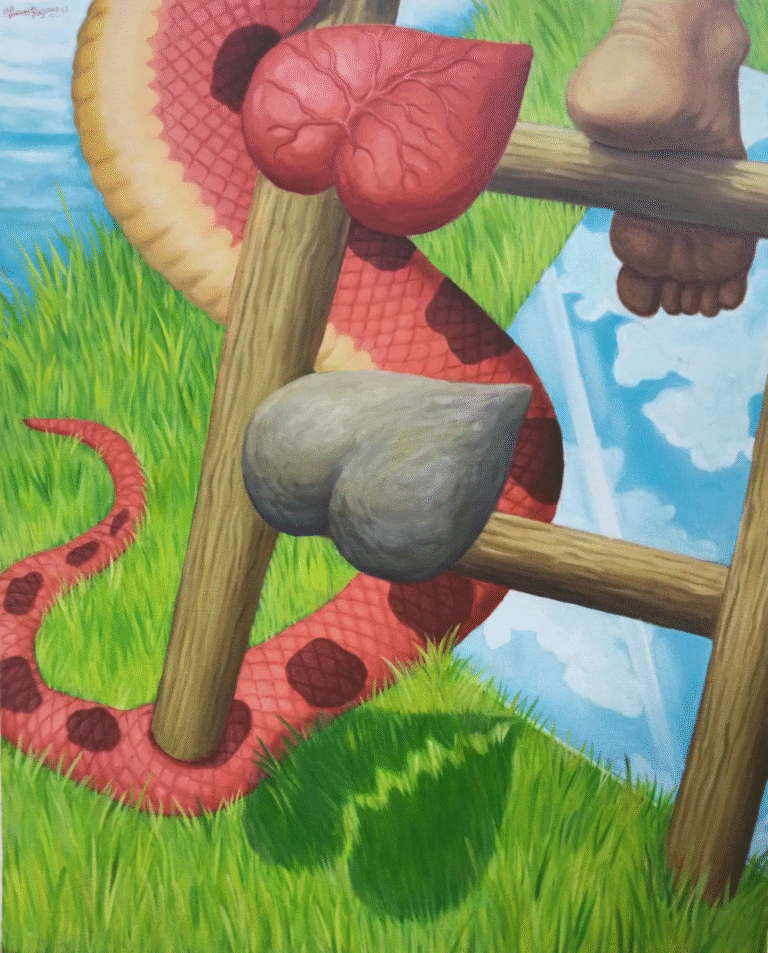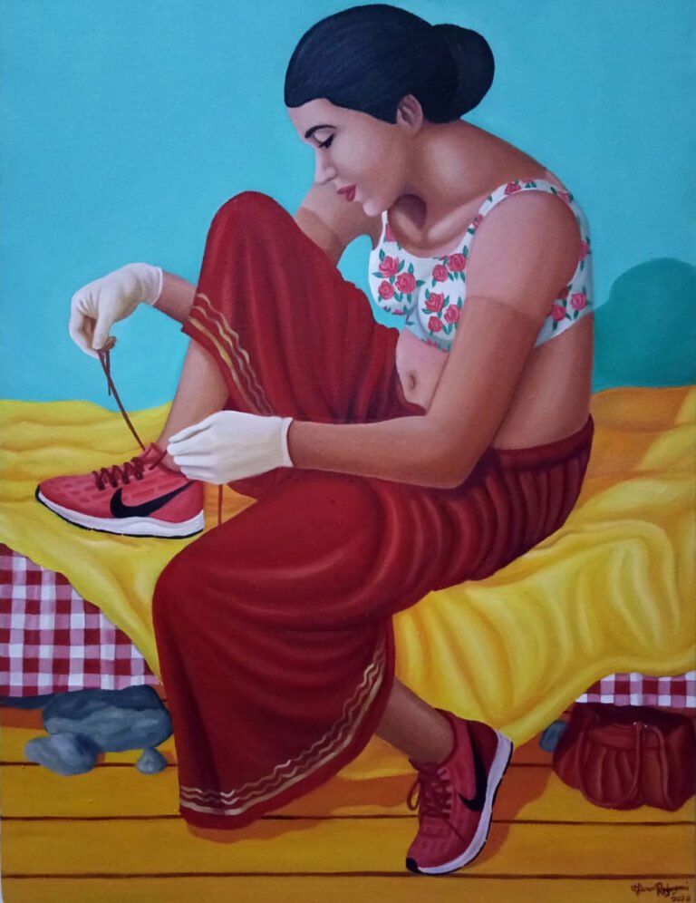 Tarun Rajvansi, born in 1995 in Delhi, is a self-taught artist who continuously explores new creative avenues. Through oil and acrylic paintings, the artist examines the intricate interplay of stability within intimately framed compositions. A myriad of themes is explored, including rigidity, stubbornness, obstinacy, fanaticism, introspection, societal standards, stigmas, and the dynamics of social class. Irony and sensations are evoked, inviting viewers to ponder the layers of meaning embedded within the work. Inspiration is drawn from various sources such as spontaneous happenings, conversations with loved ones, public spaces, and deep-seated emotions, allowing diverse experiences to be reflected in the paintings. The process of creation is often marked by expressive, dramatic gestures through which the emotional intensity of the themes is conveyed, enabling the narrative to unfold with greater impact.
